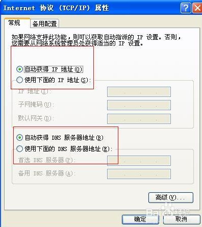 第二步:發現此時還顯示未連接成功,可以點擊下方的“屬性”,然后在雙擊下圖的“Internet協議(TCP/IP)”,選到“自動獲取IP地址”及“自動獲得DNS服務器地址”。確定后一般都能連上,如果還不能,就可能是路由器需要恢復出廠設置,一般在通電狀態下用牙簽或細針插入路由器上reset小孔5到10秒即可,這里要注意安全,請看下面如圖: