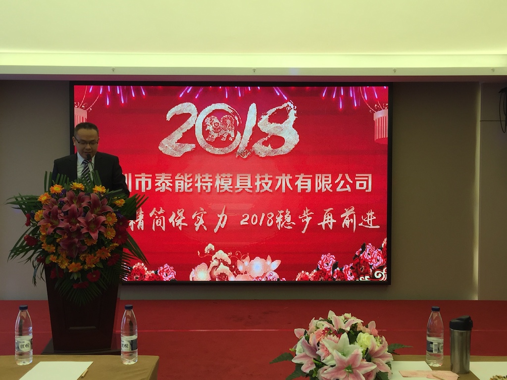 2018年元月27日深圳市泰能特模具技術(shù)有限公司“感恩2017前進(jìn)2018”迎新年會(huì)在石巖中濠國(guó)際酒店隆重舉行。公司董事長(zhǎng)及總經(jīng)理分別在年會(huì)上作了新年致辭和“2017精簡(jiǎn)保實(shí)力,2018穩(wěn)步再前進(jìn)”的新年工作報(bào)告。報(bào)告中回顧了公司2017年存在的一些問(wèn)題和取得的成績(jī)及2018年的發(fā)展規(guī)劃。